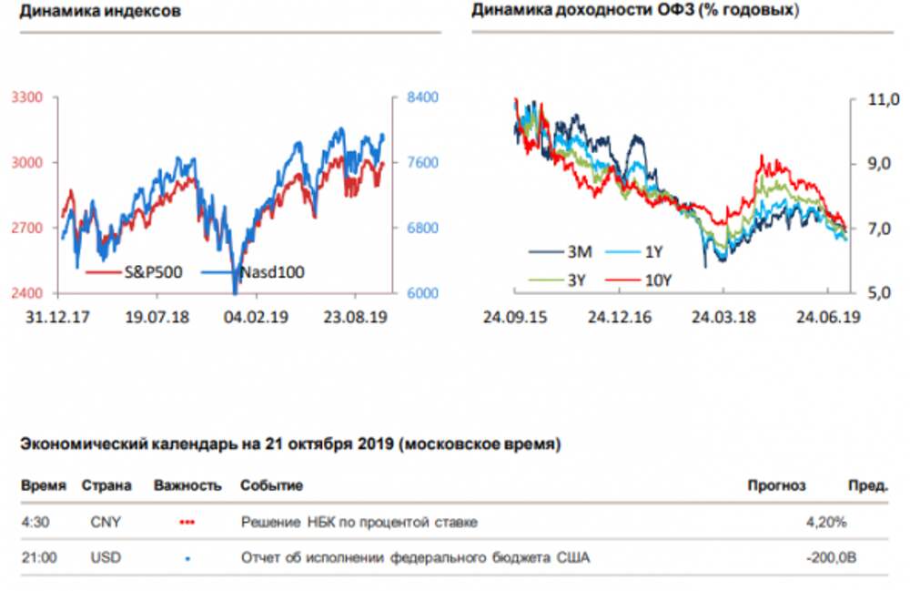 Утренний комментарий по финансовым рынкам за 21.10.2019