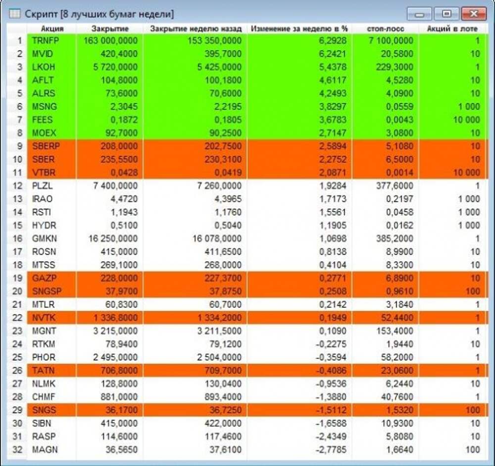 В таблице 1 приведены 32 наиболее ликвидные акции нашего рынка, упорядоченные по убыванию доходности за неделю с 11.10.2019 по 18.10.2019. Первые 8 акций – это лучшие бумаги недели по состоянию на утро 21.10.2019.Внимание! В связи... Далее