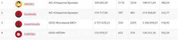 В основном, конечно, трейдеры со стартовой около 100 тысяч, но есть и миллионер.